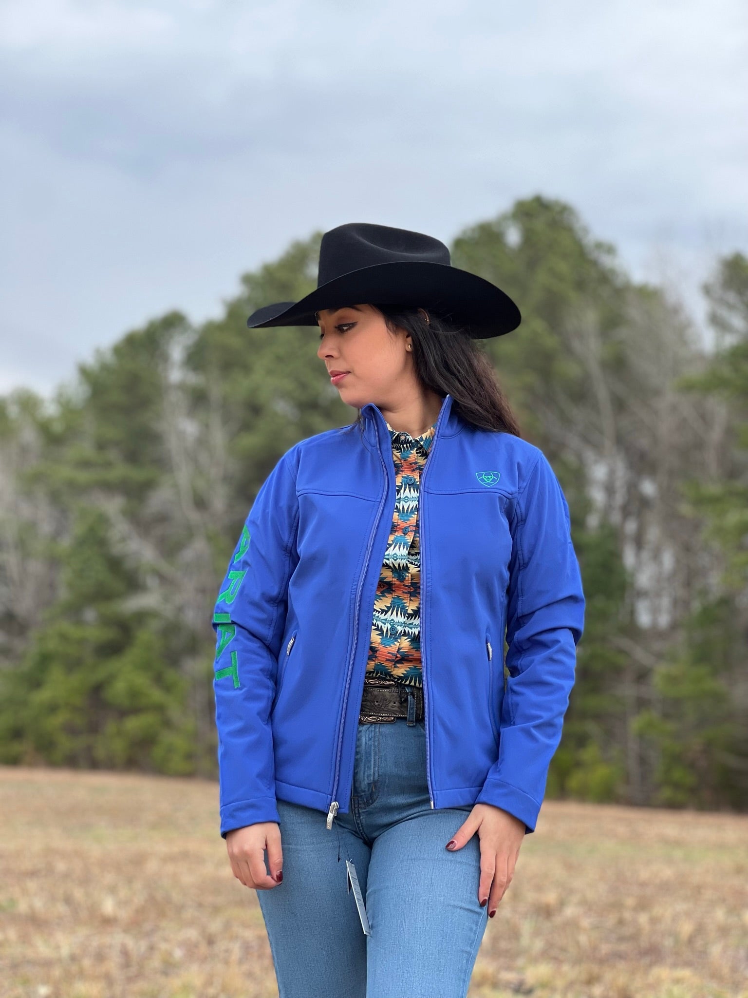 Nuestra clásica chaqueta, en un color super peculiar AZUL, logo en CAFÉ en la manga superior derecha, está diseñada a propósito para mantenerte cómodo y seco en los días húmedos y con brisa en el granero o en la arena.