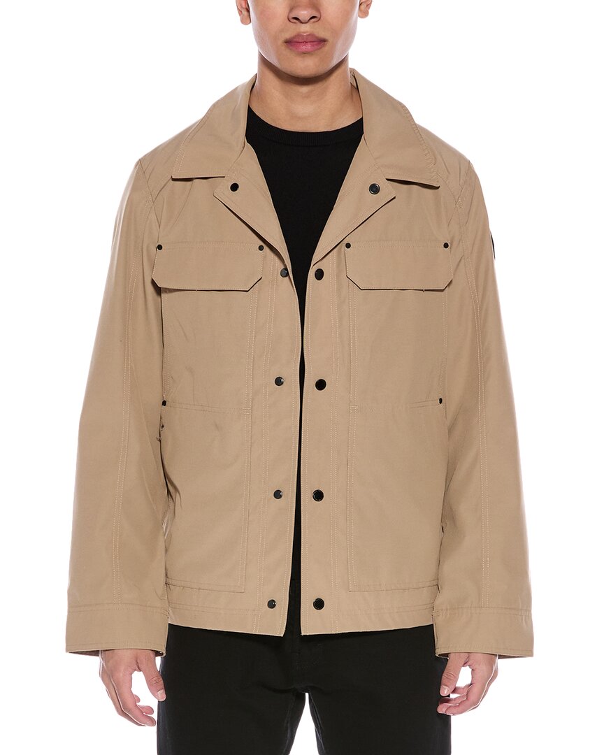 Introducing the Canada Goose Jacket, a must-have piece for the modern man seeking functional outerwear with a touch of adventure. This beige jacket features a spread collar, four front pockets, patch logo, and snap cuffs for added style. Measuring approximately 30 inches from shoulder to hem, this jacket is designed for a comfortable fit. The snap front closure adds convenience, while the lightweight 84% polyester and 16% cotton material is perfect for daily wear. Lined with 100% polyester, this jacket is machine washable for easy care. Made in Canada, you can trust that this jacket is of the highest quality. Whether you're exploring the great outdoors or running errands in the city, the Canada Goose Jacket is the perfect choice for any occasion. Please note that while our products are 100% genuine, in some cases we purchase merchandise from trusted independent suppliers and not directly from the brand owner. Rest assured, we stand by the authenticity of every product sold on our site. Experience the quality and craftsmanship of Canada Goose with this versatile and stylish jacket.