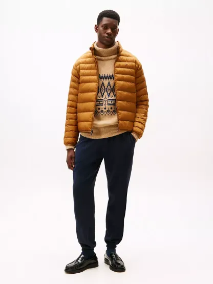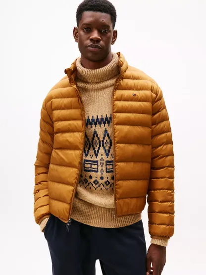 Tommy Hilfiger men's jacket. Ideal for travel, this puffer jacket folds down to a fraction of its size and easily stores in the internal security zip pocket. Made from lightweight fabric and toasty insulation, it's ready for whatever the weather report is dishing out.