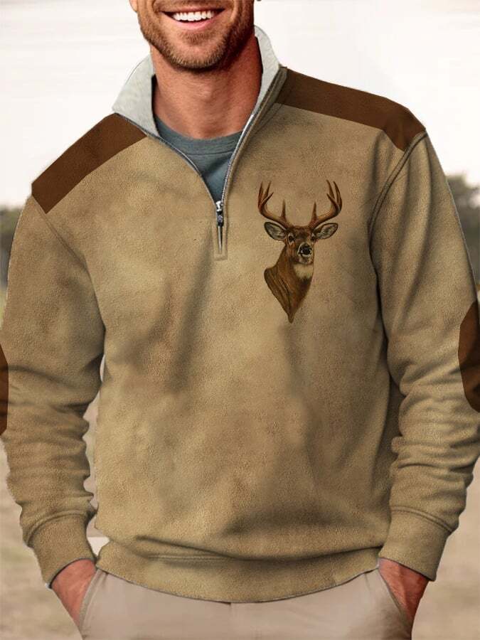 Men's Retro Western Style Arctic Velvet Stand Collar Sweatshirt