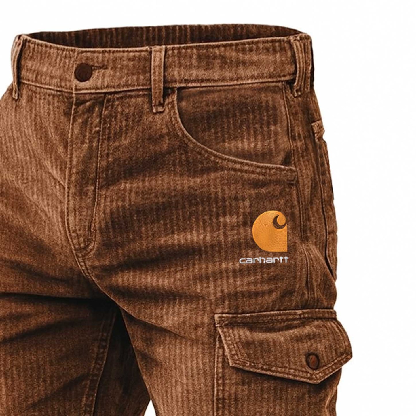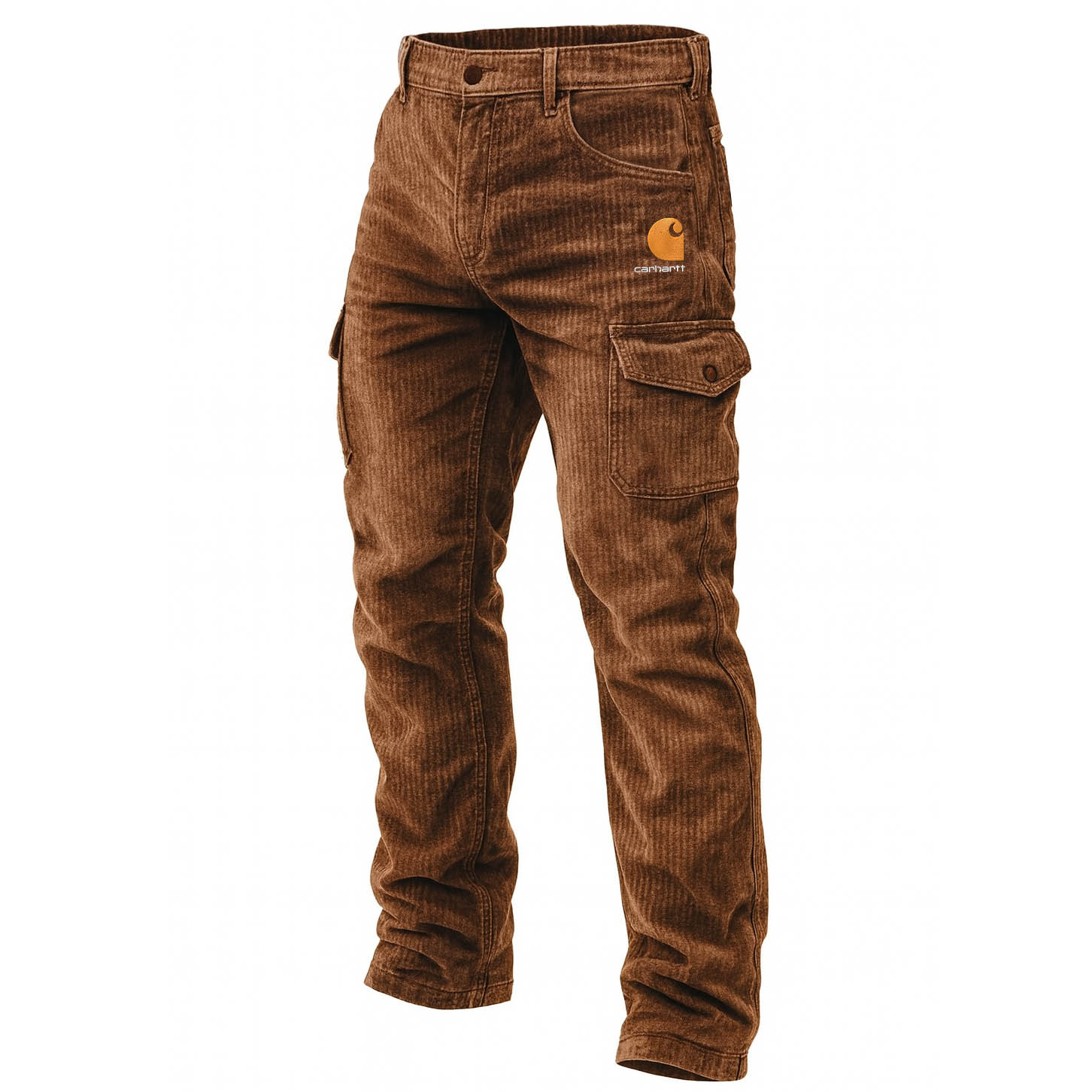 Men's Vintage Brown Corduroy Embroidered Multi-Pocket Cargo Work Pants Trousers