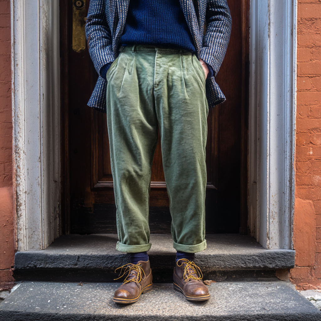 • Design Elements: Pleated front design, cuffed hems, and a classic fit