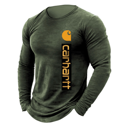 Men's Vintage Letter Print Cotton Long Sleeve Crew Neck T-Shirt