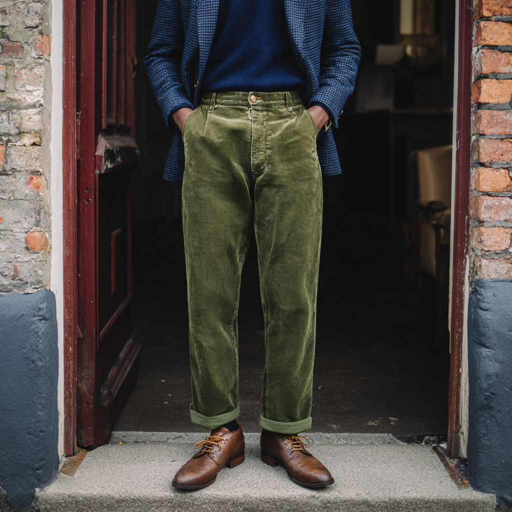 Men's Vintage Olive Green Corduroy Trousers Pants