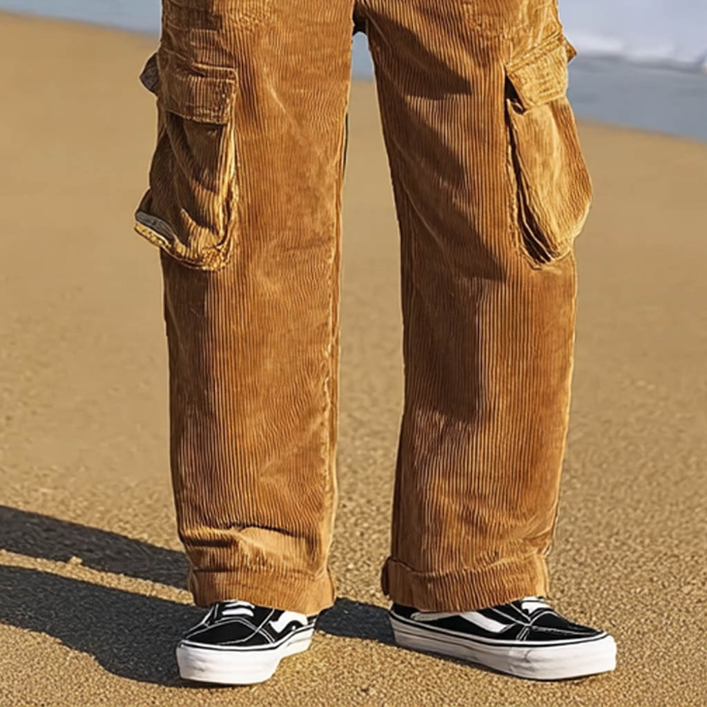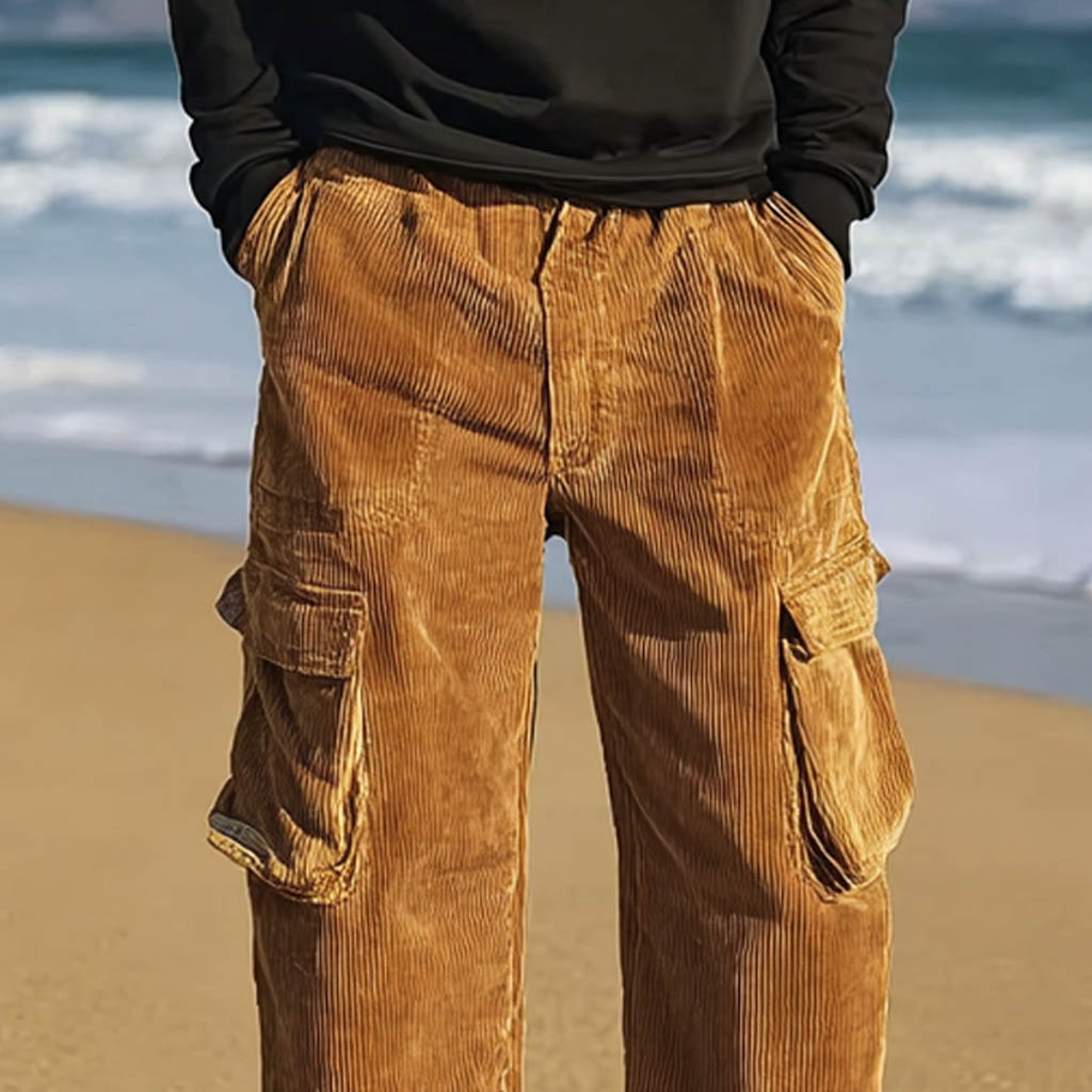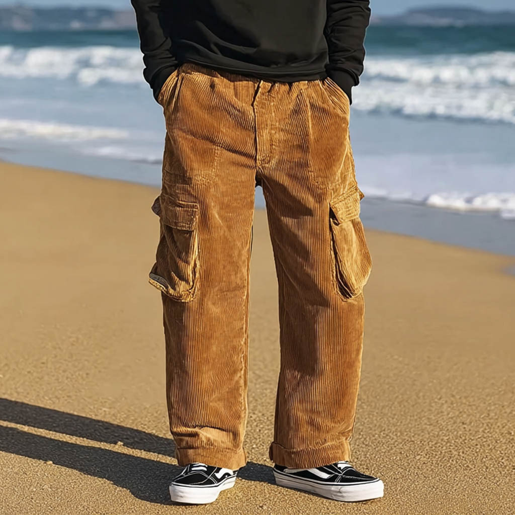 Men's Vintage Surf Corduroy Elastic Drawstring Cargo Pants Trousers