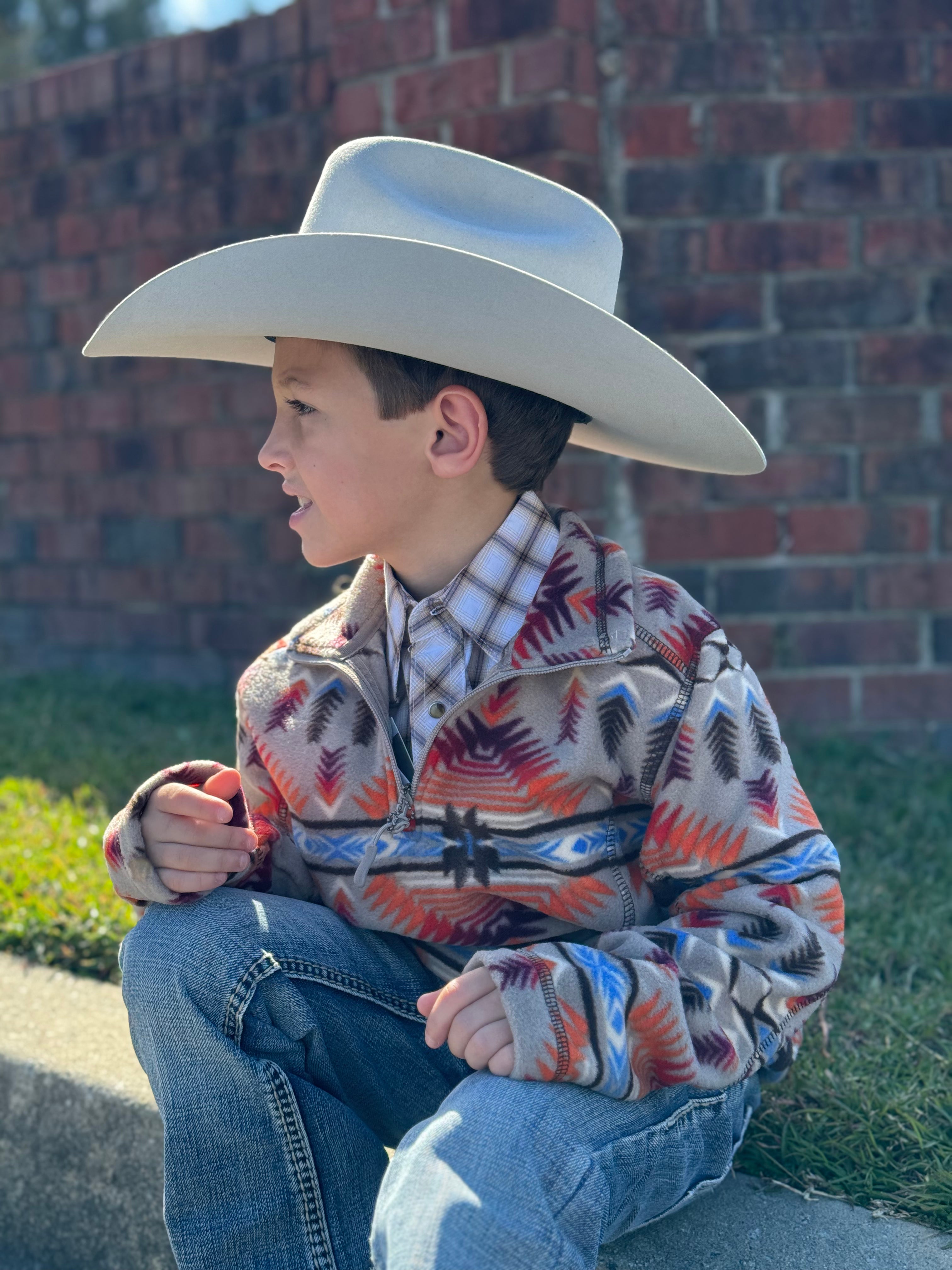 PANHANDLE AZTEC PRINTED FLEECE PULLOVER TAN KIDS YOUTH