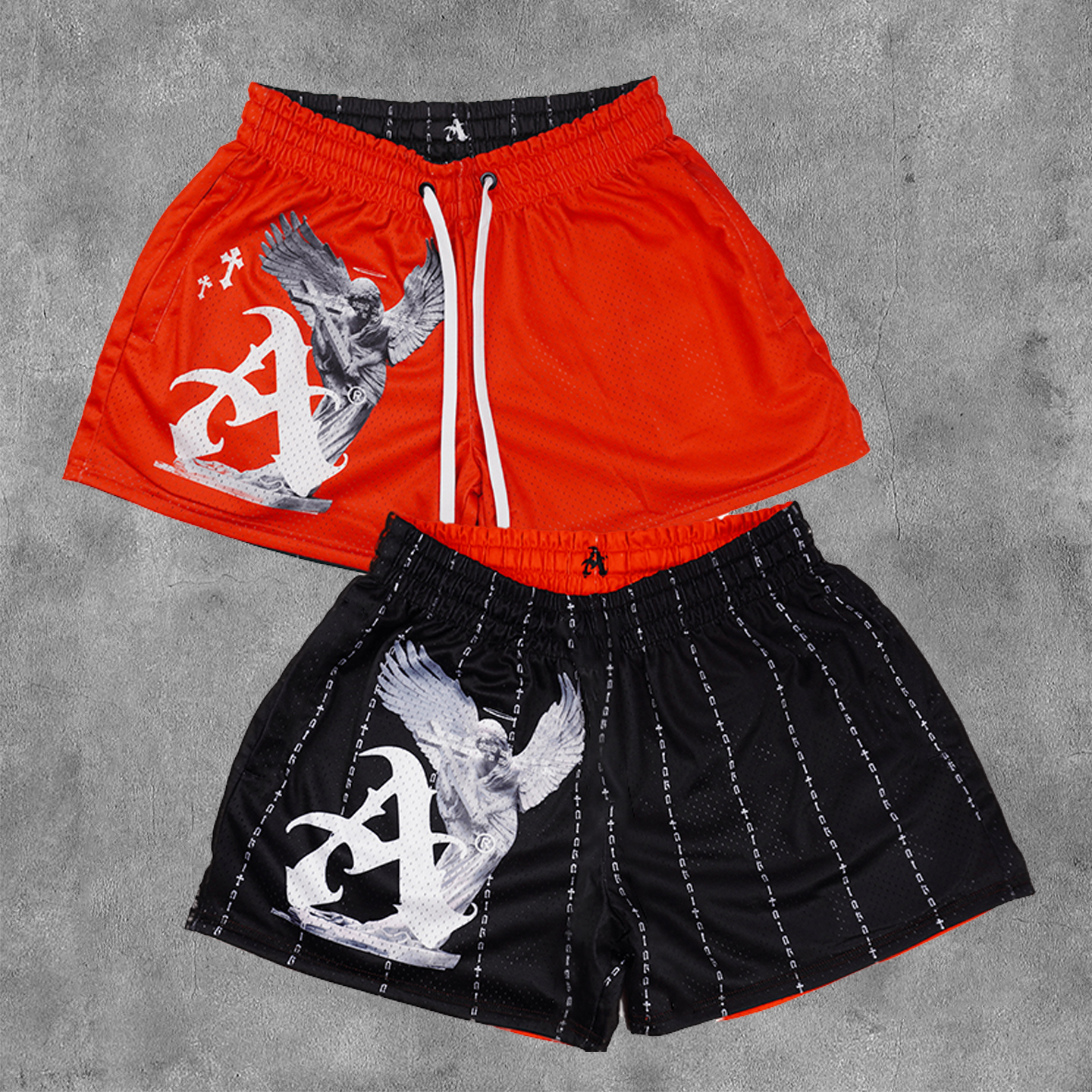 Personalized Angel Print Reversible Mesh Shorts