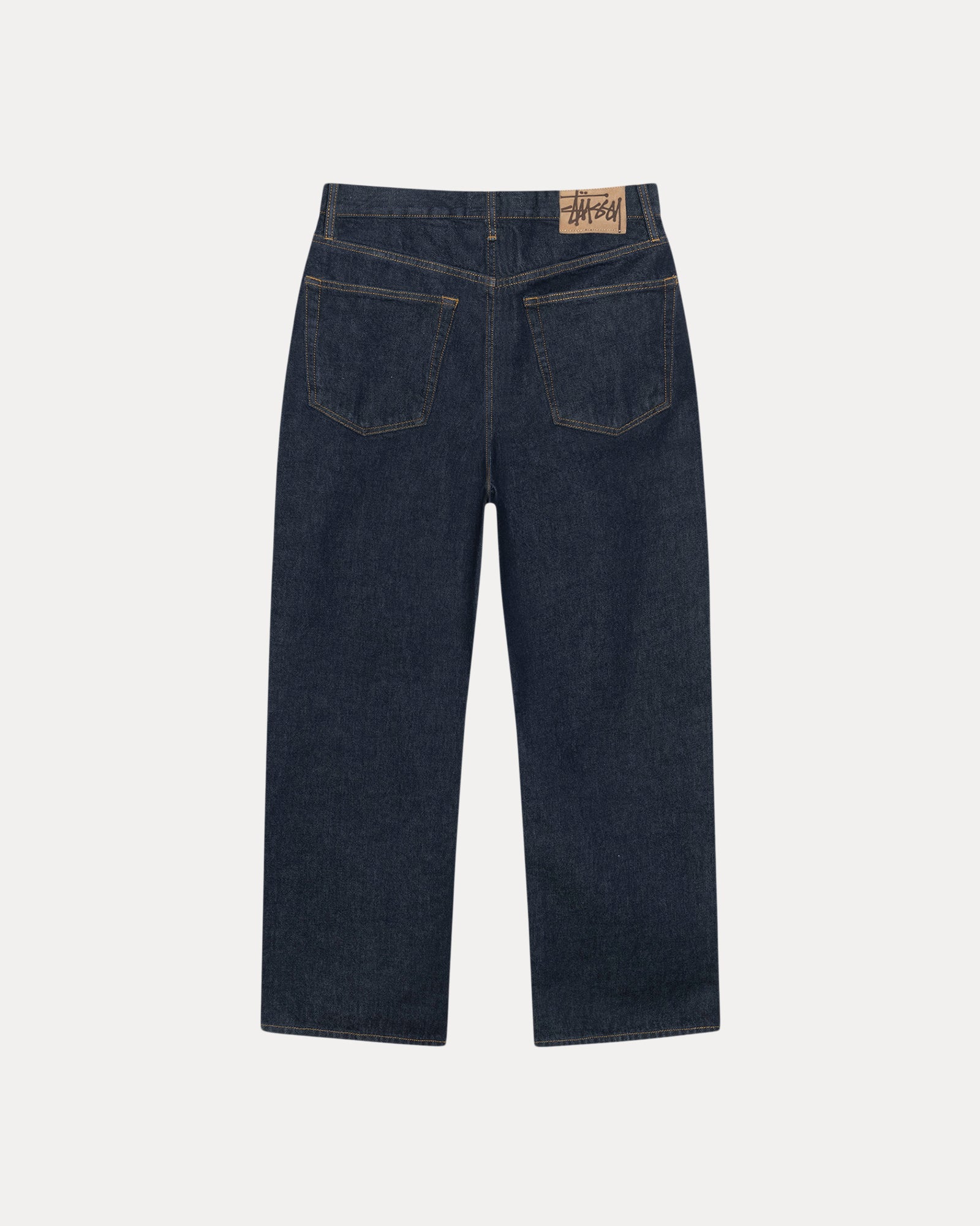 Relaxed jean in 14.5oz cotton denim. Regular waist with a relaxed rise and roomy straight cut through to the cuff. Features branded nickel shank hardware and a suede Stüssy logo patch. Fits true to size.