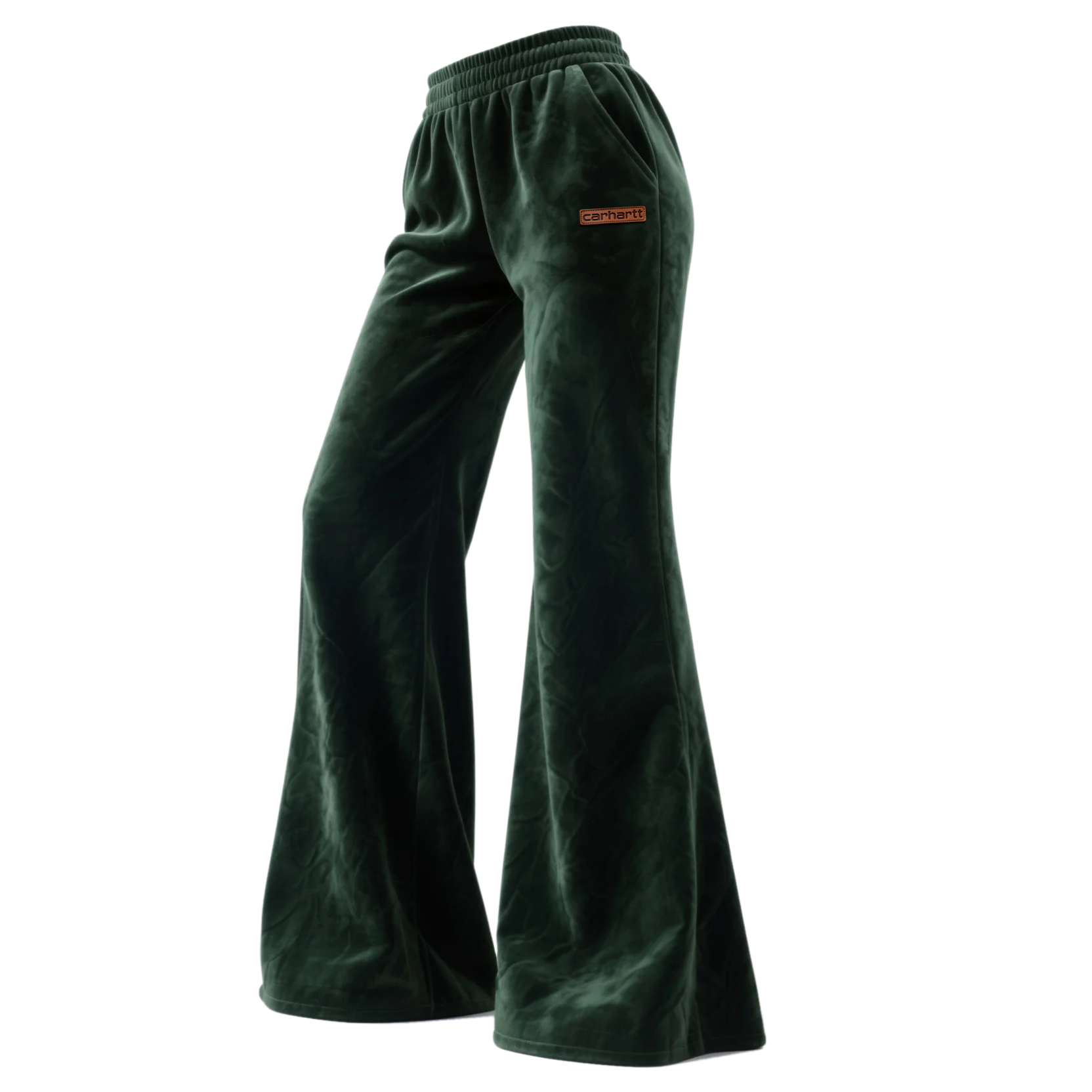 • Design Elements: Flared leg design, elastic waistband, and a subtle logo patch