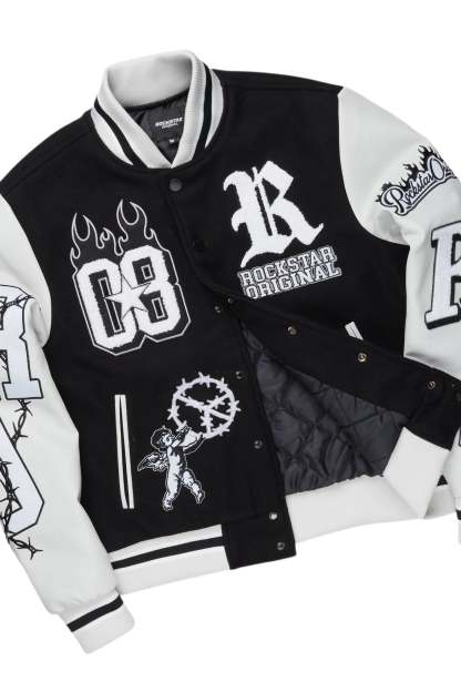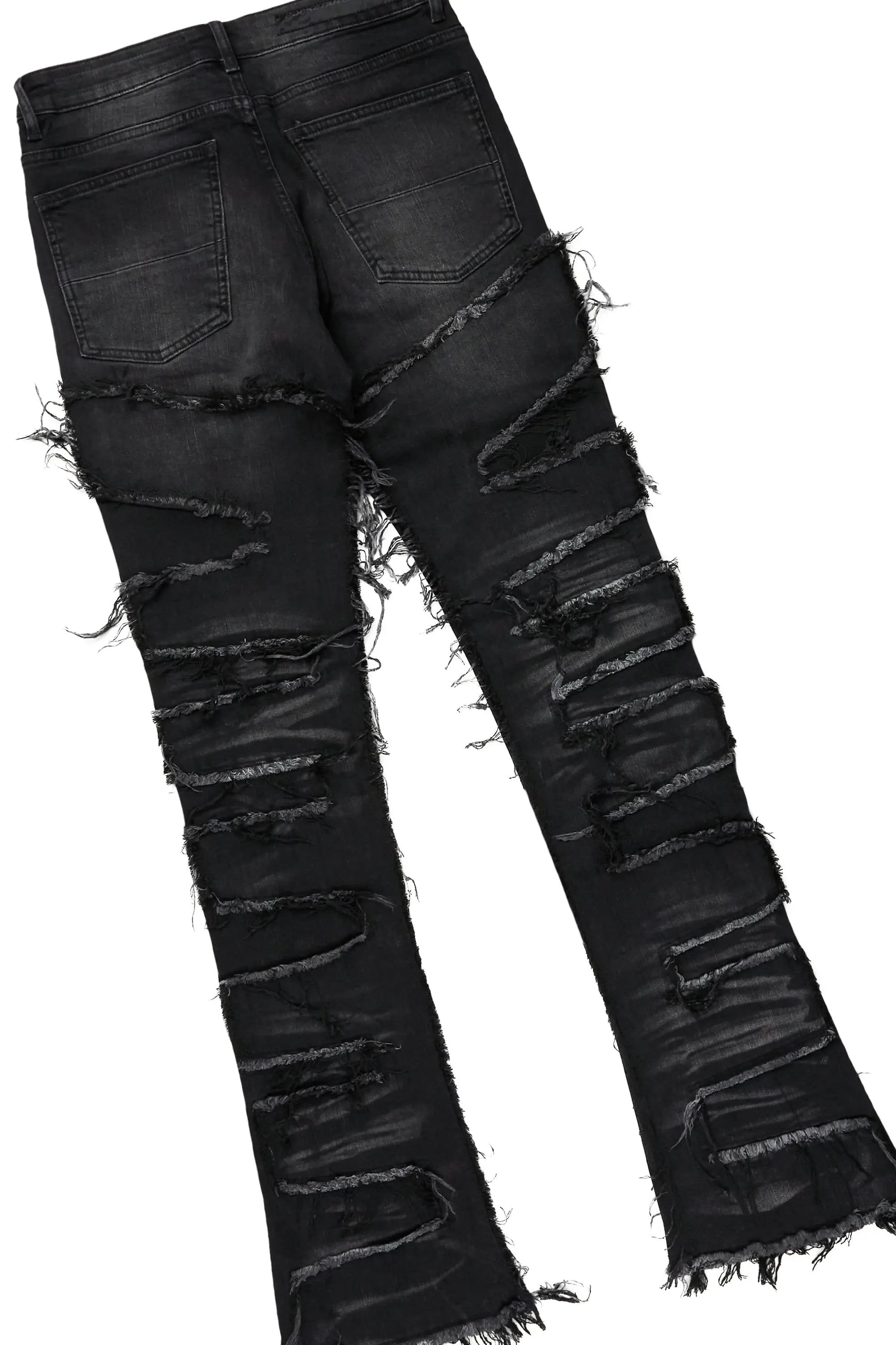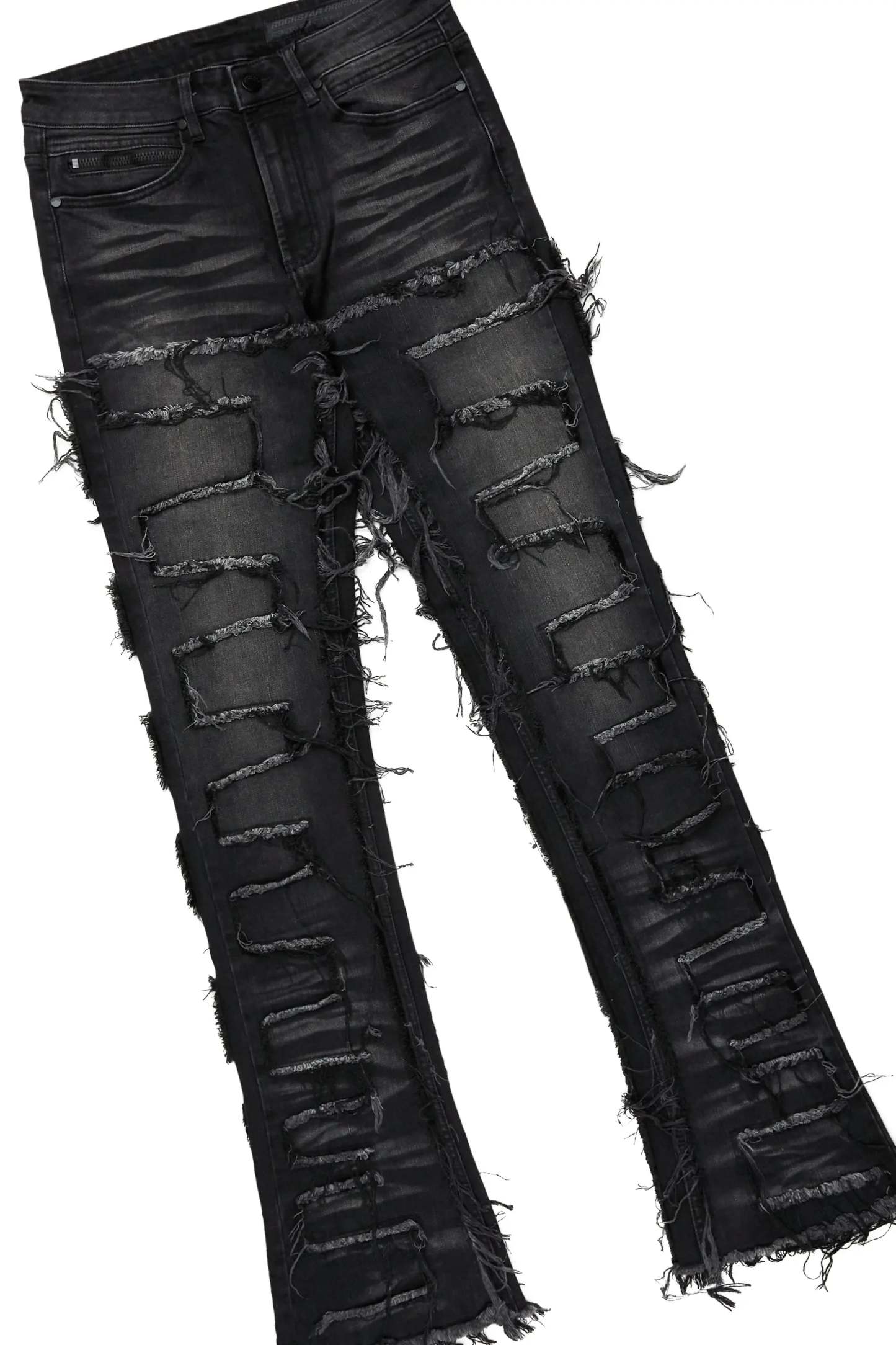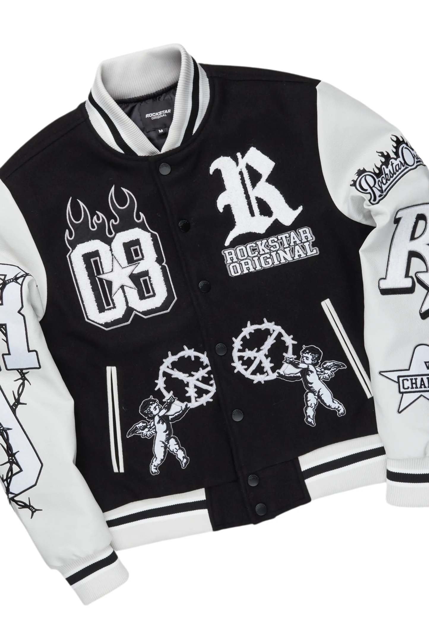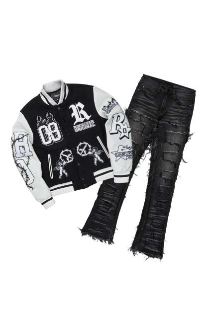 Rune Black Varsity Jacket & Shake Stacked Flare Jean Bundle