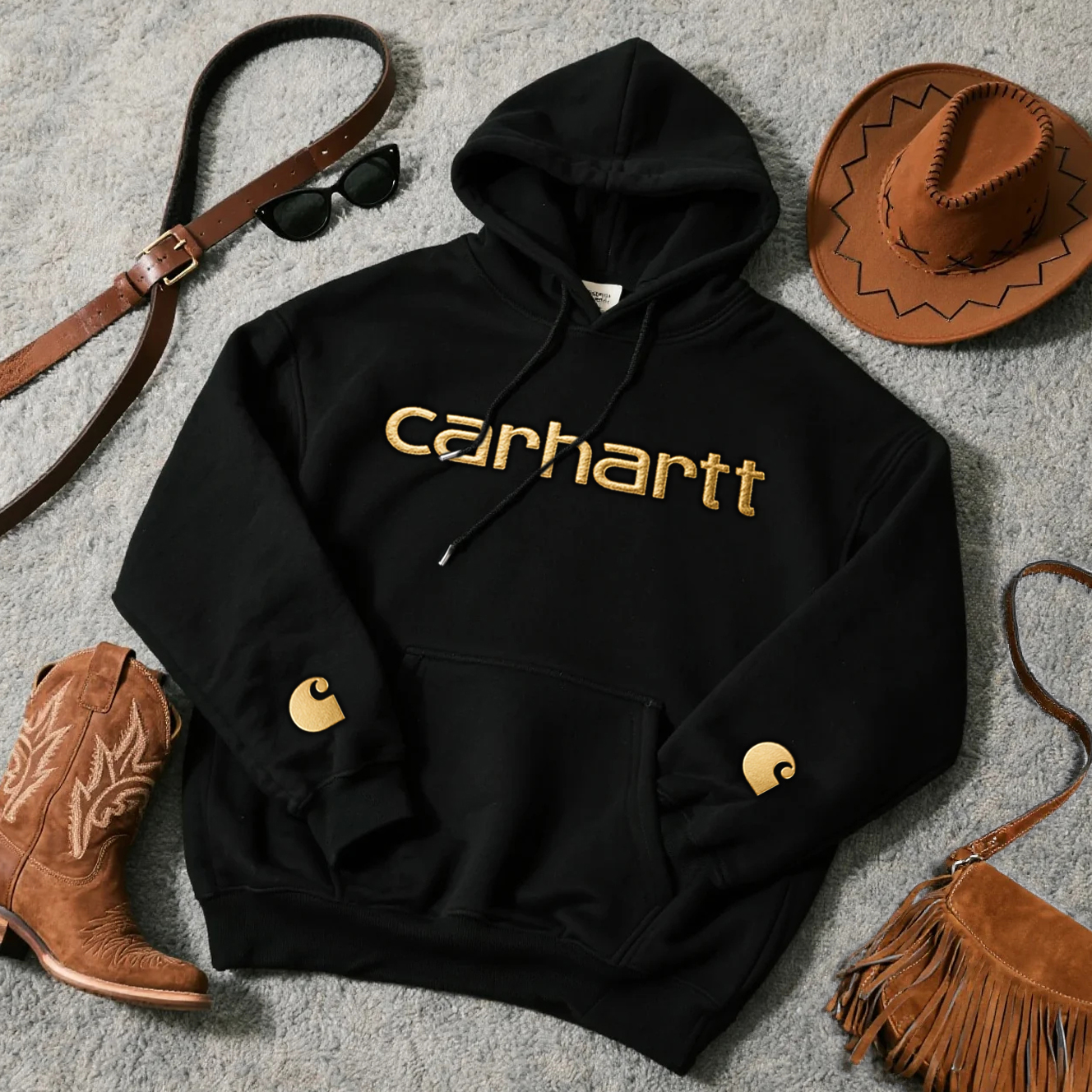 Stylish Hoodie with Gold Embroidery and Western Accessories Set