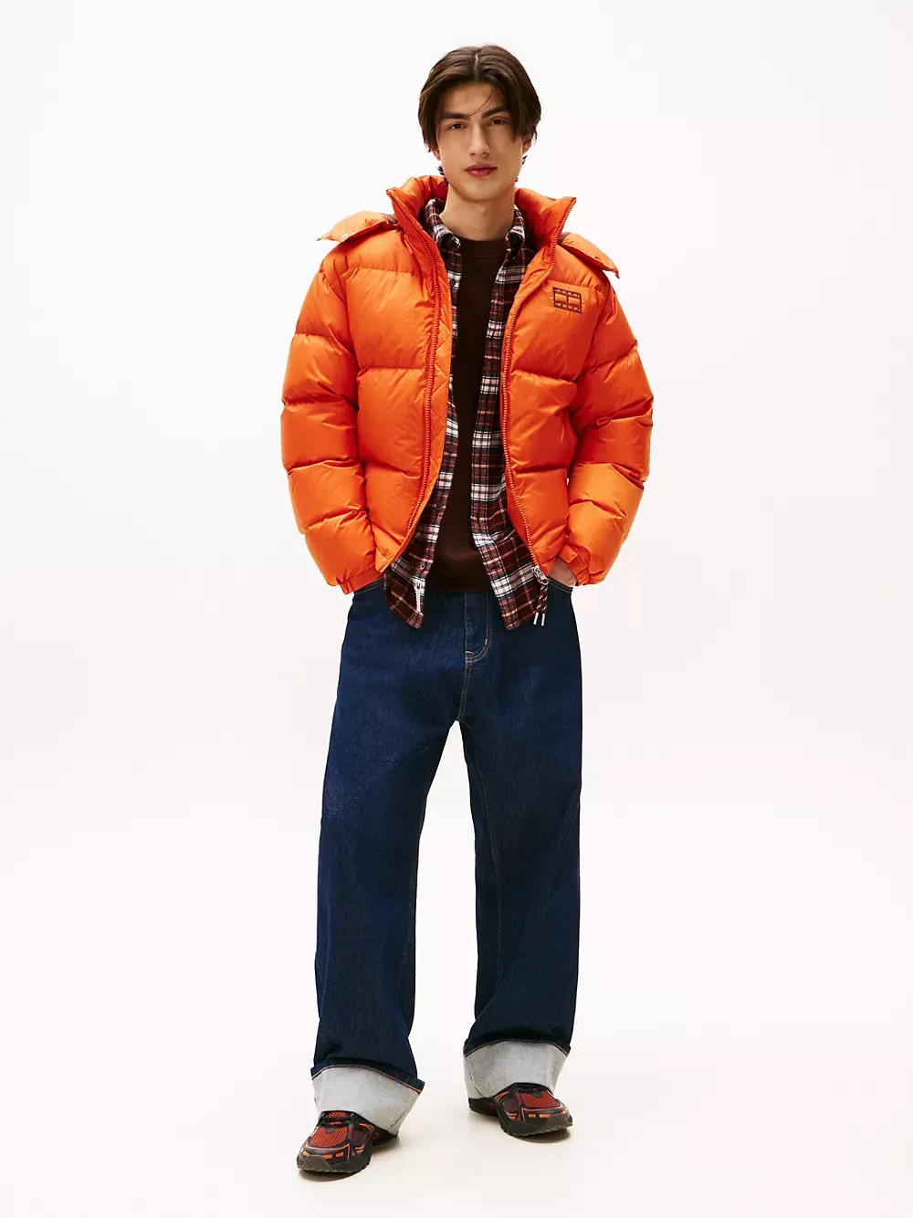 Tommy Hilfiger men's jacket. Made from durable ripstop and filled with down insulation, our hooded puffer resists snags and tears and delivers on warmth. Boasting these cold-weather credentials, it's the ideal companion for an outdoor winter adventure. Part of our Tommy Jeans collection.