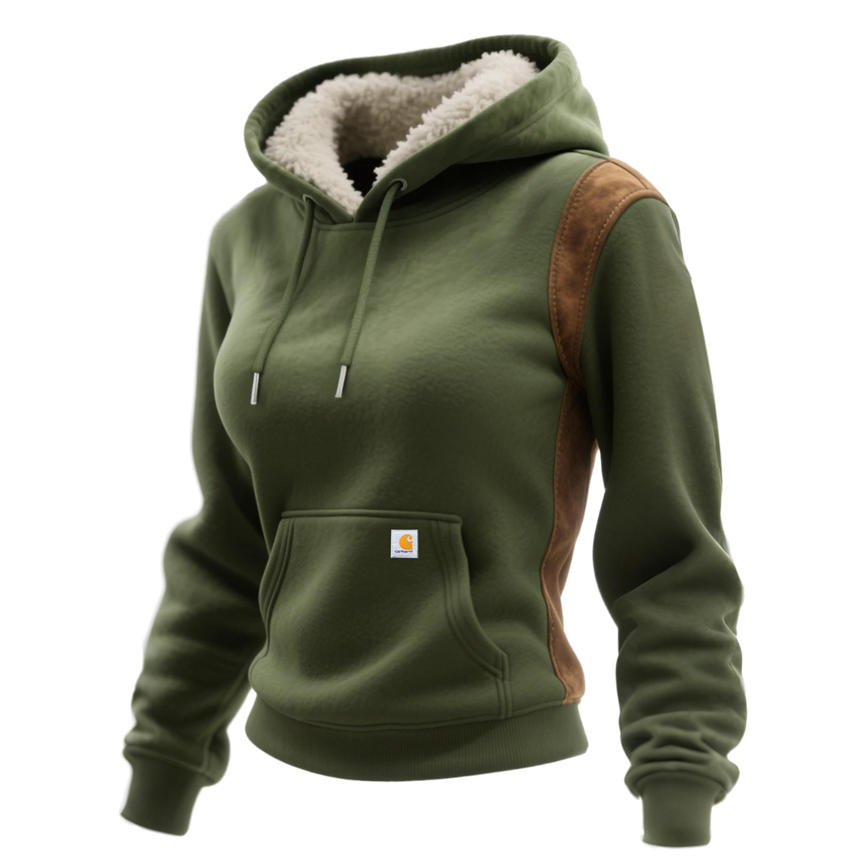 • Design Elements: Contrasting shoulder panel, front pocket, drawstring hood
