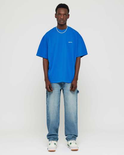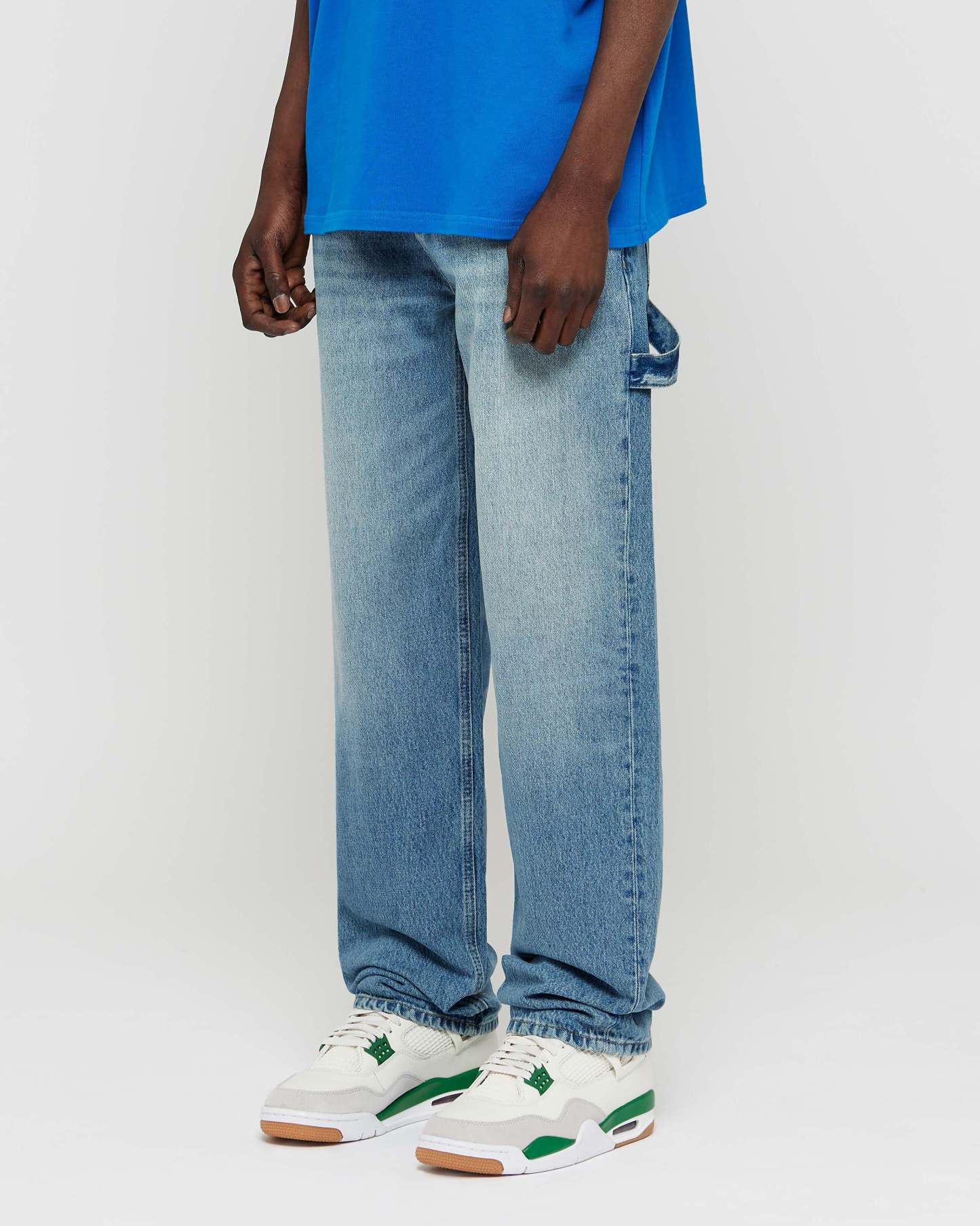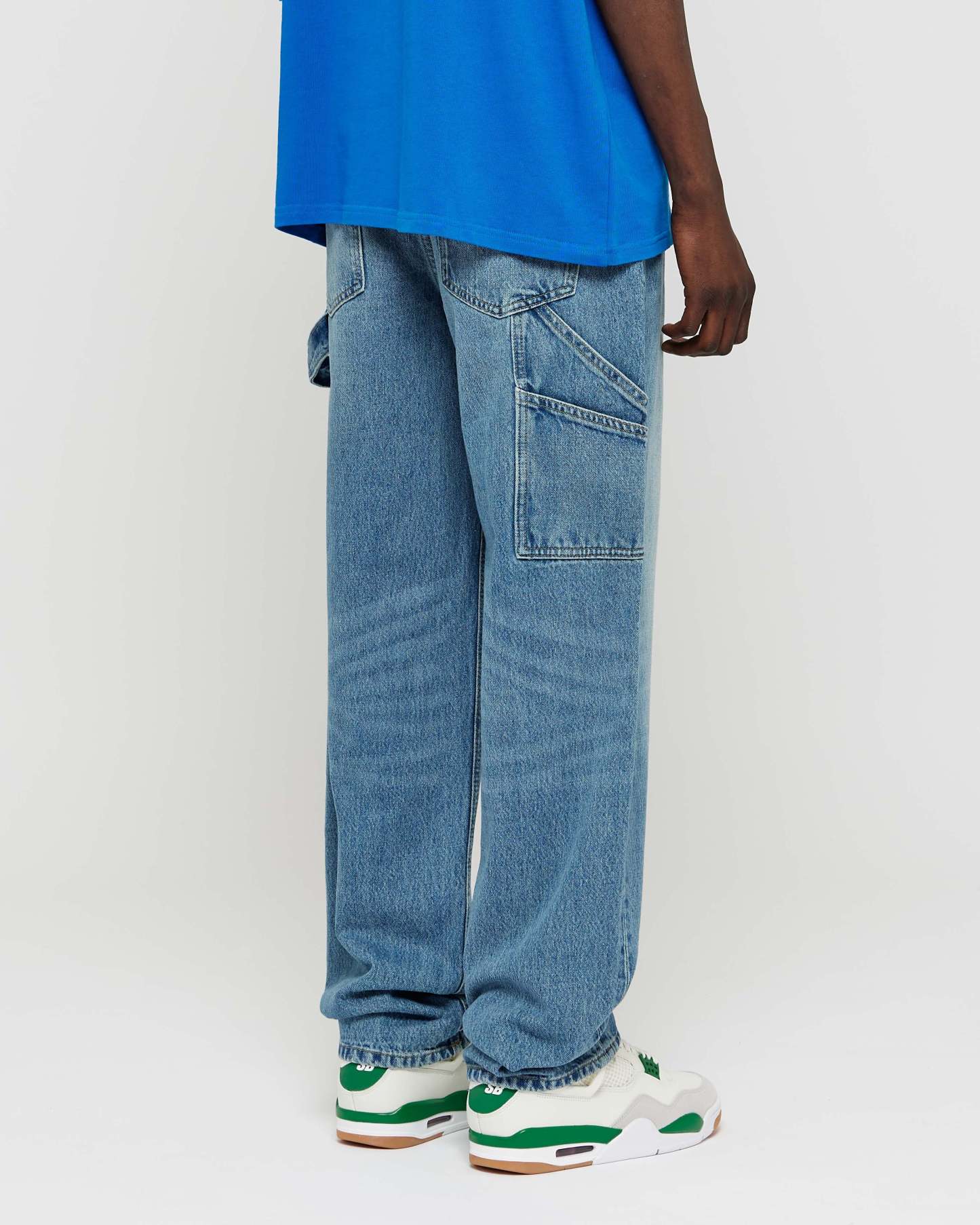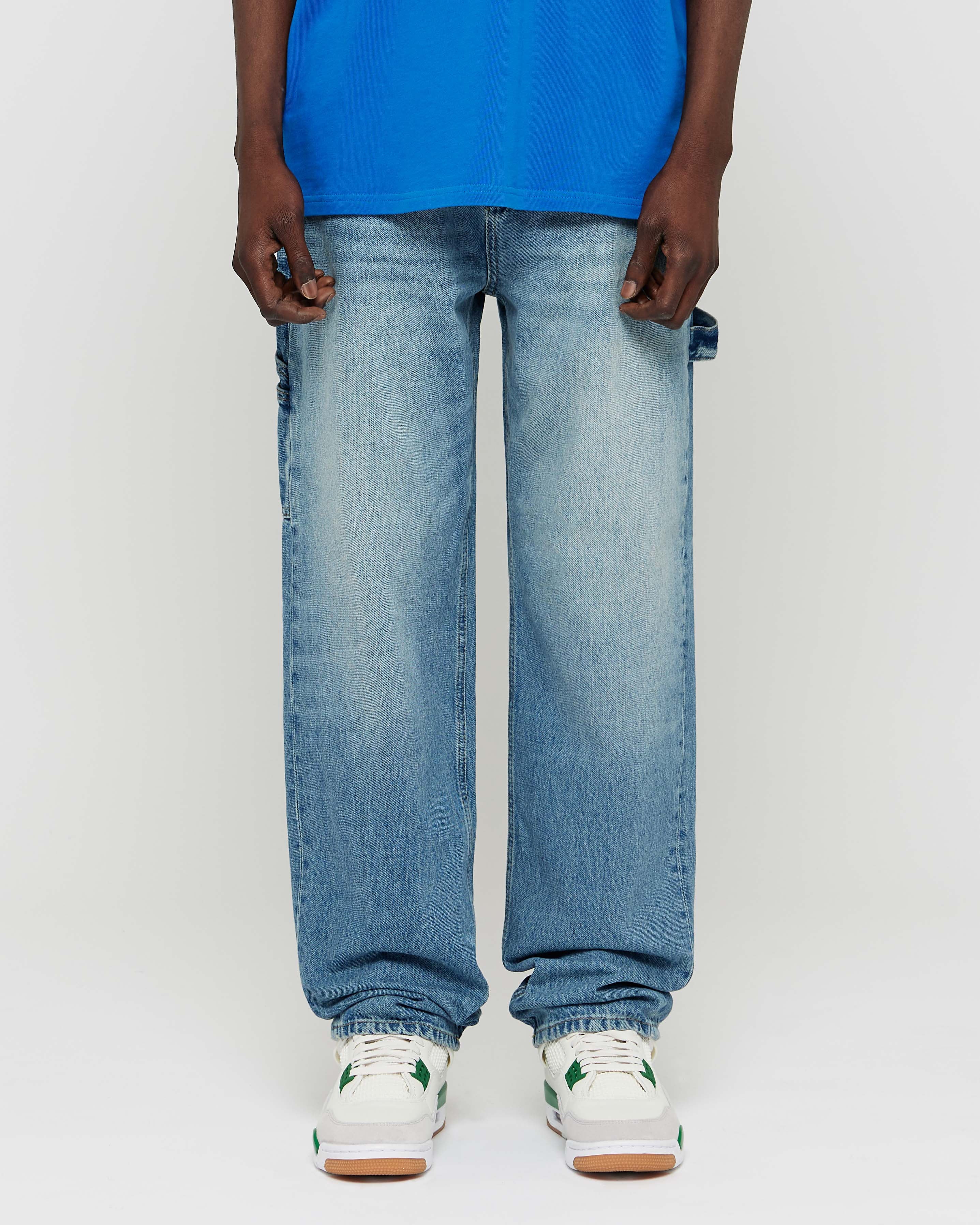Jeans Light Wash Blue Baggy Fit Carpenter Detail, Loop Metal Emblem 100% cotton, The model is 188cm tall, weighs 74kg and wears size 32 85S-411-27