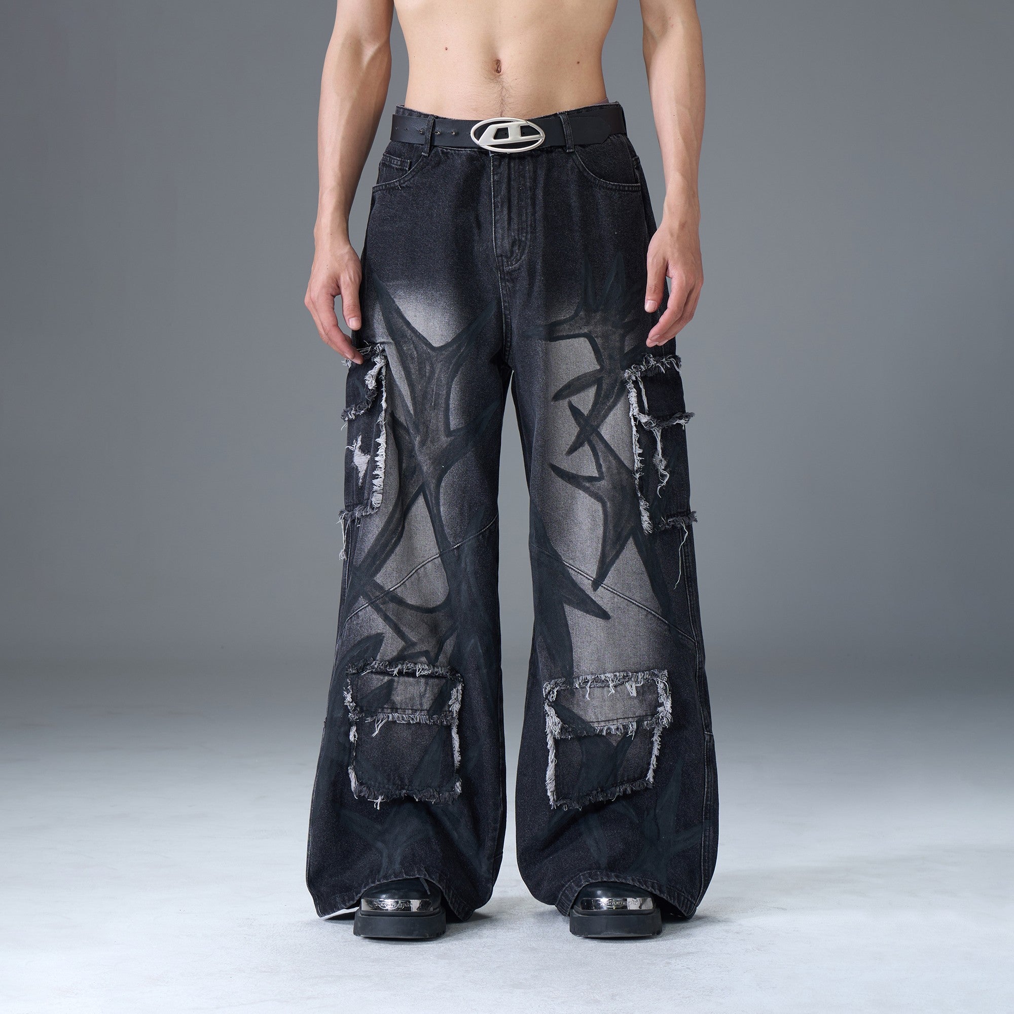 Level up your streetwear game with the "Edgework Utility Distressed Jeans," a perfect blend of rugged design and urban flair. Featuring heavy distressing, raw edges, and multi-pocket detailing, these jeans are built for those who push boundaries. Crafted from premium-quality denim, they deliver durability, comfort, and a bold look that defines street style.