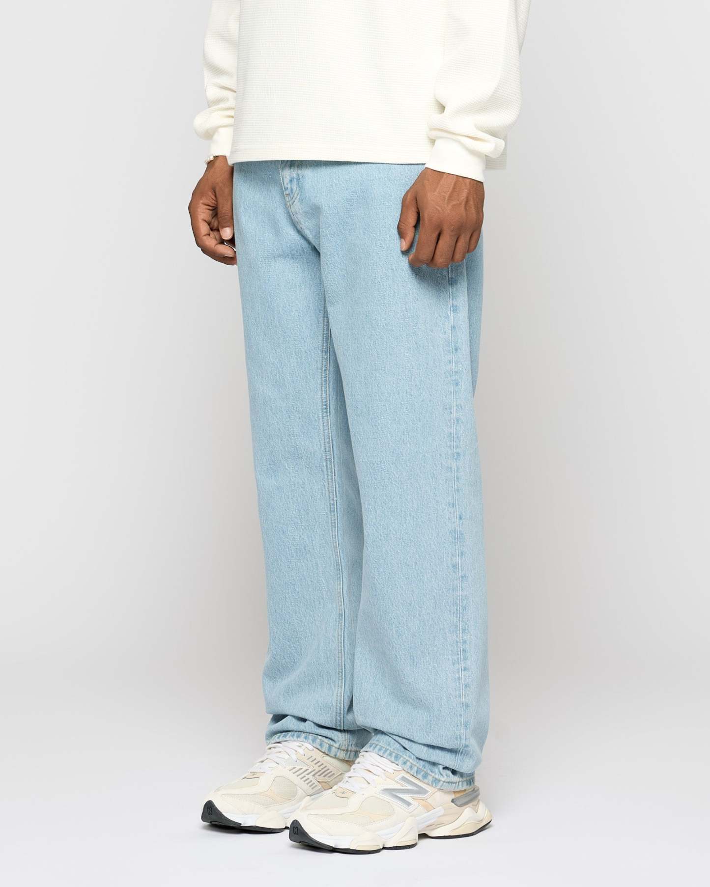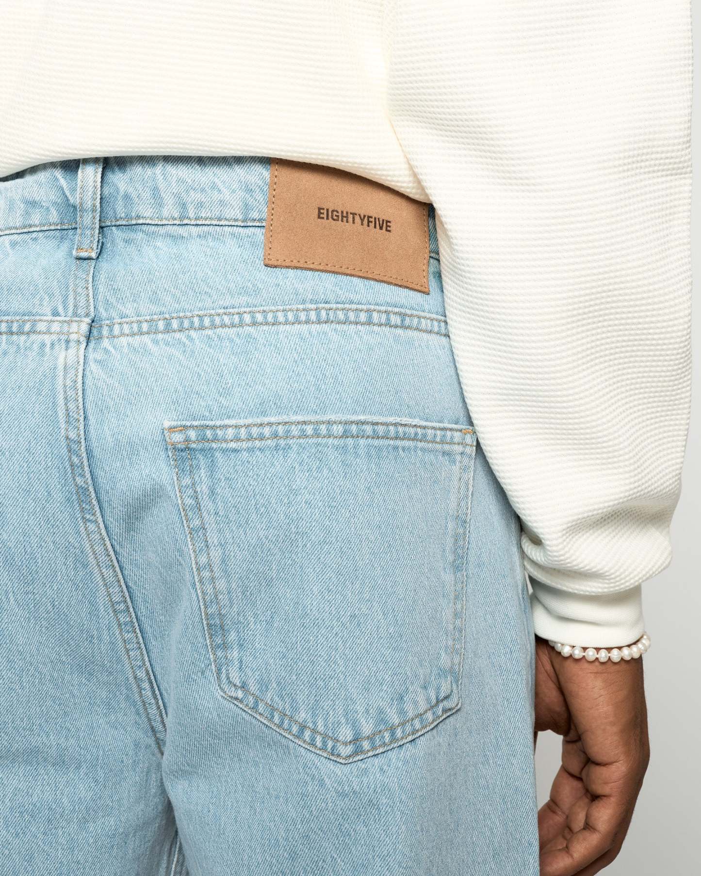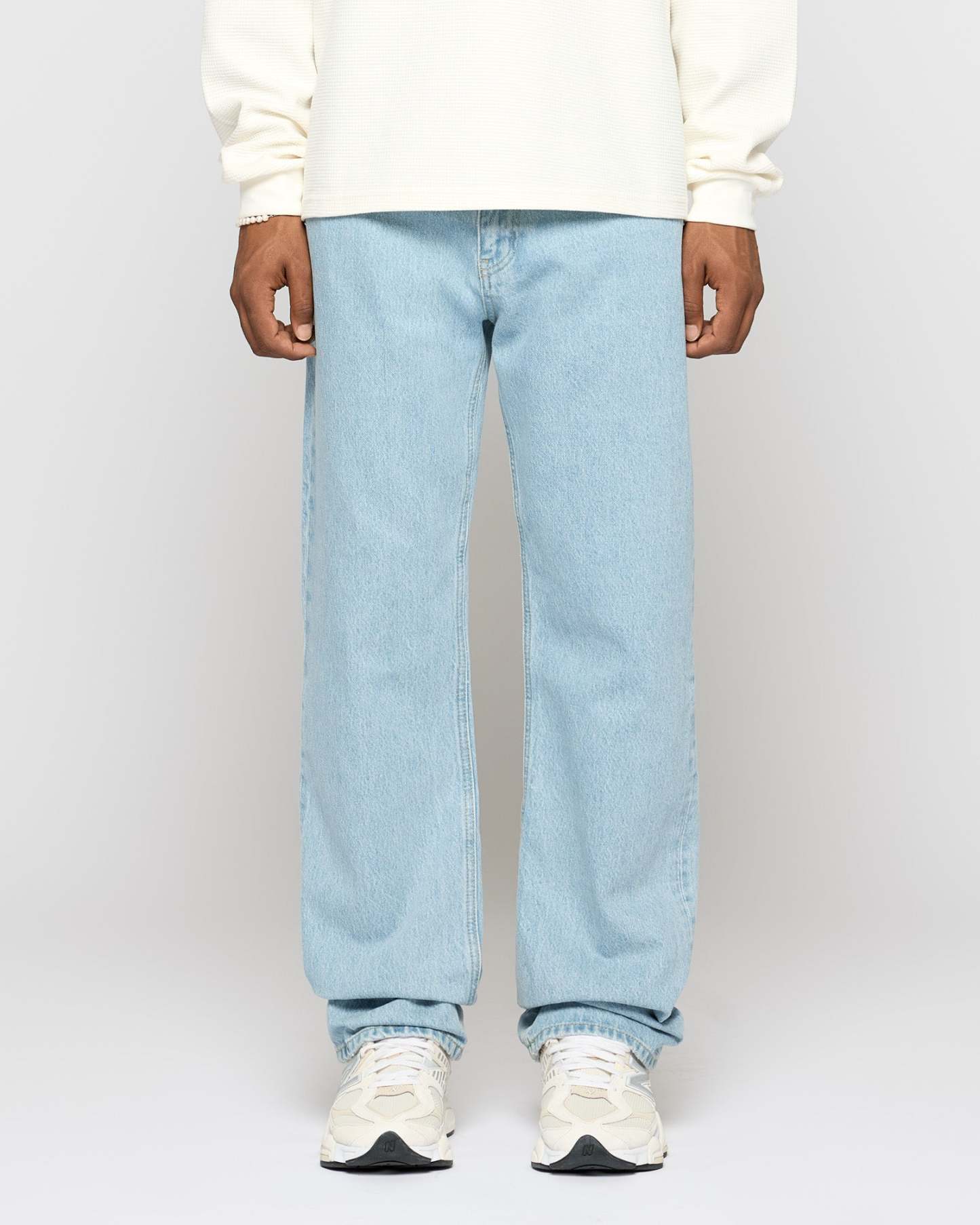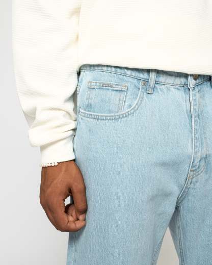 Jeans Vintage Blue Slim Fit Metal Emblem 100% cotton, The model is 188cm tall, weighs 74kg and wears size 32 85S-300-03